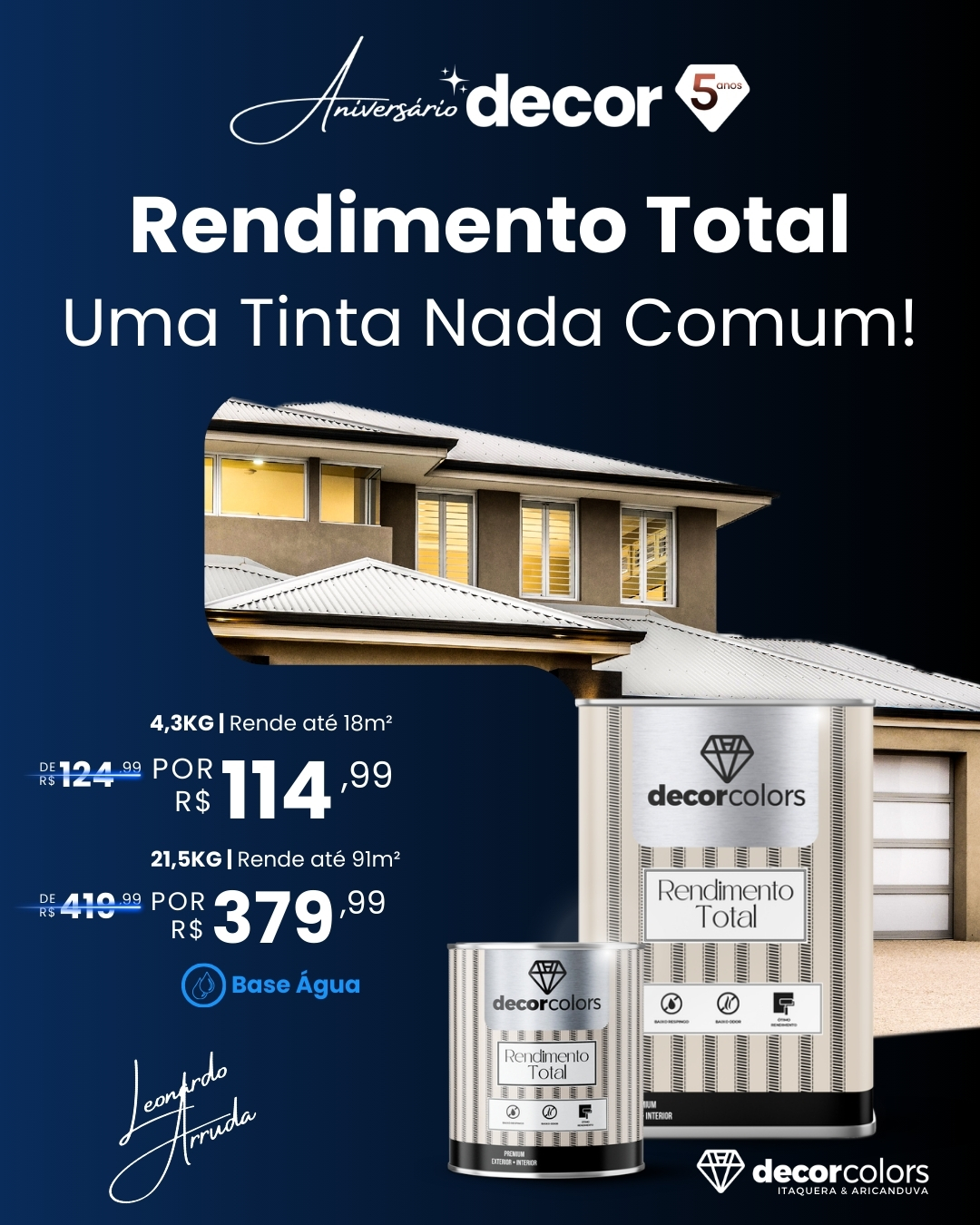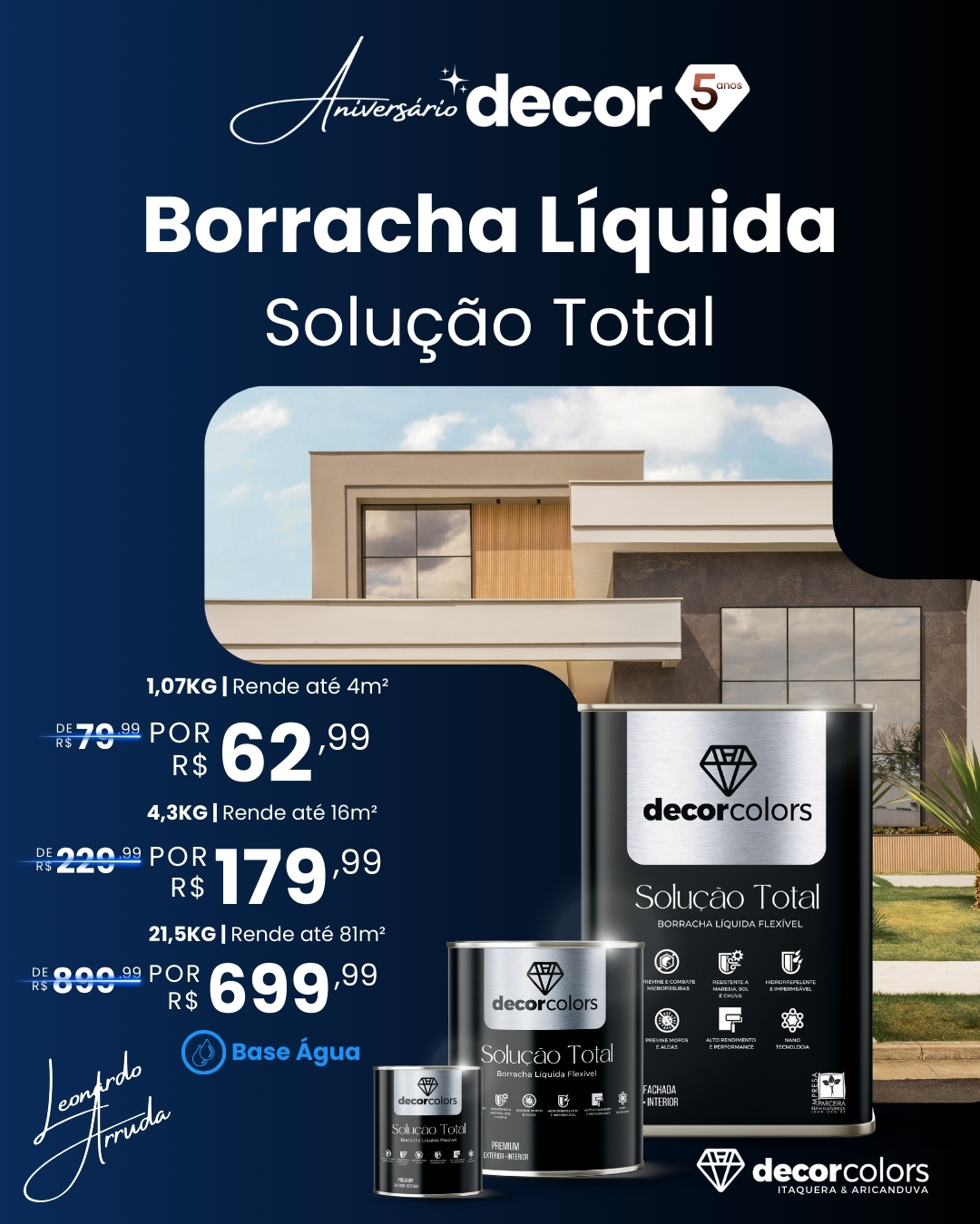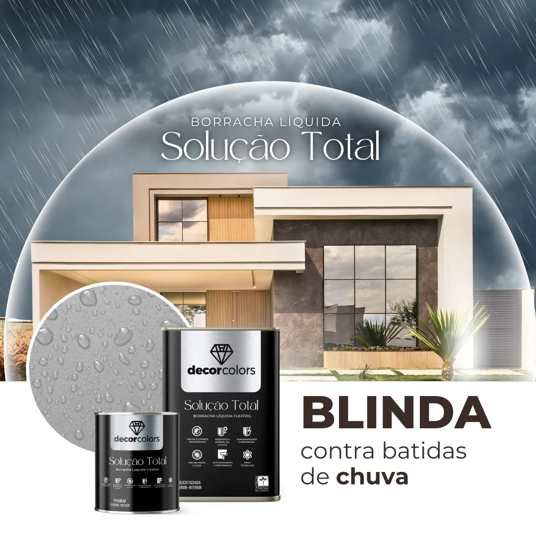 Solução completa de blindagem e pintura impermeável, que oferece resistência a sol e chuva, é hidro-repelente, econômica e lavável. Uma tinta diferente das comuns.