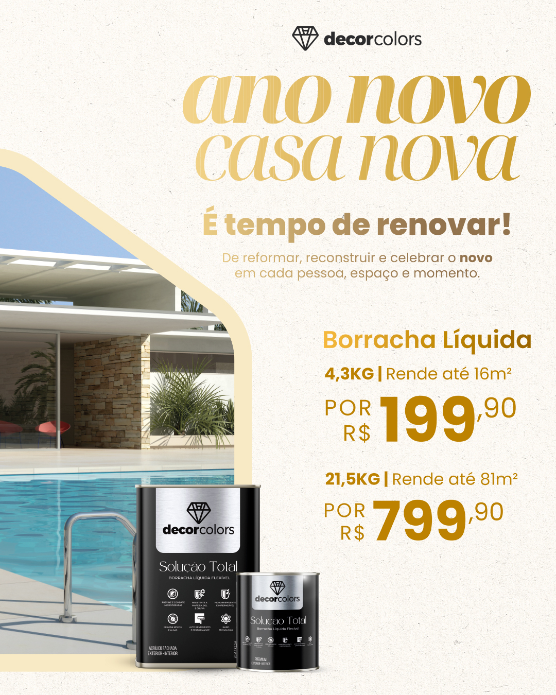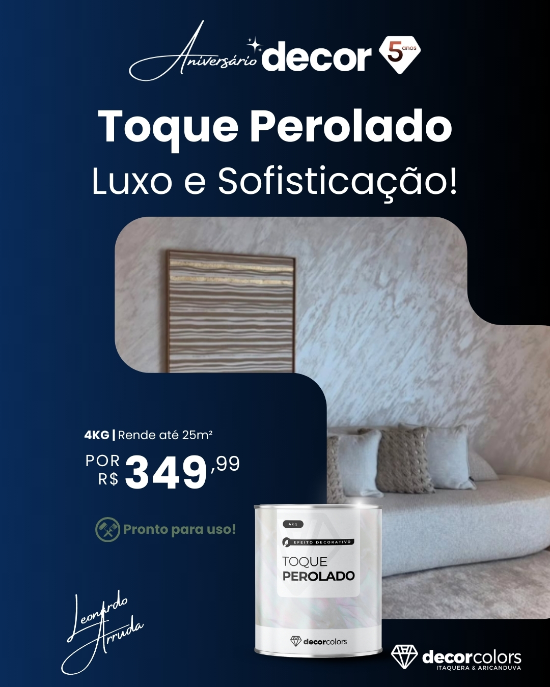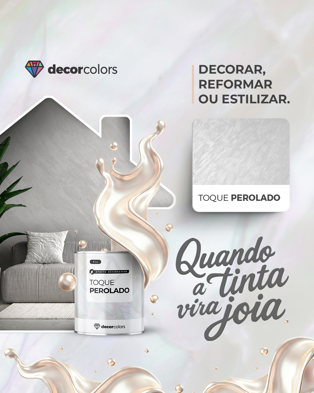 O Toque Perolado da Decor Colors é o acabamento ideal para quem busca transformar ambientes com um visual moderno, elegante e cheio de personalidade. Sua fórmula exclusiva com microesferas brilhantes proporciona o brilho do diamante e um revestimento acetinado perolizado, criando um efeito refinado que valoriza qualquer espaço.