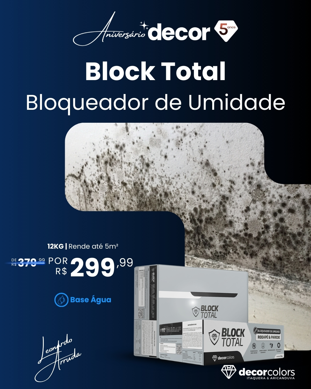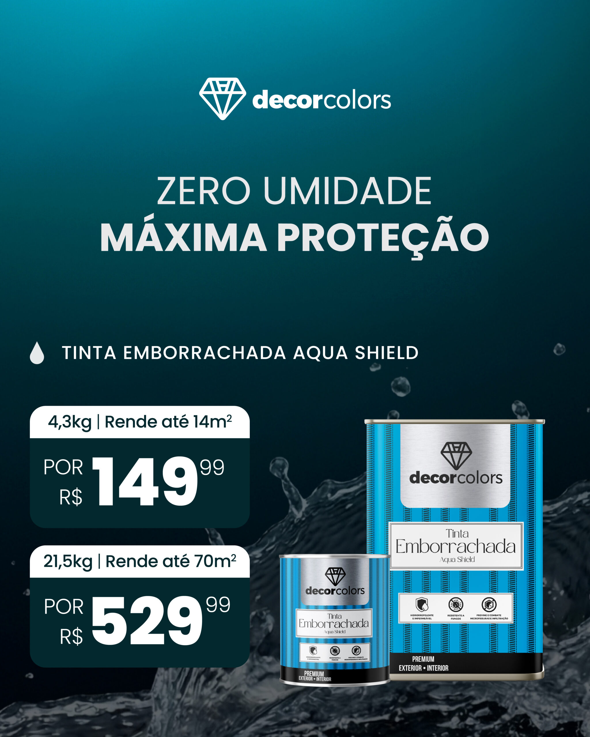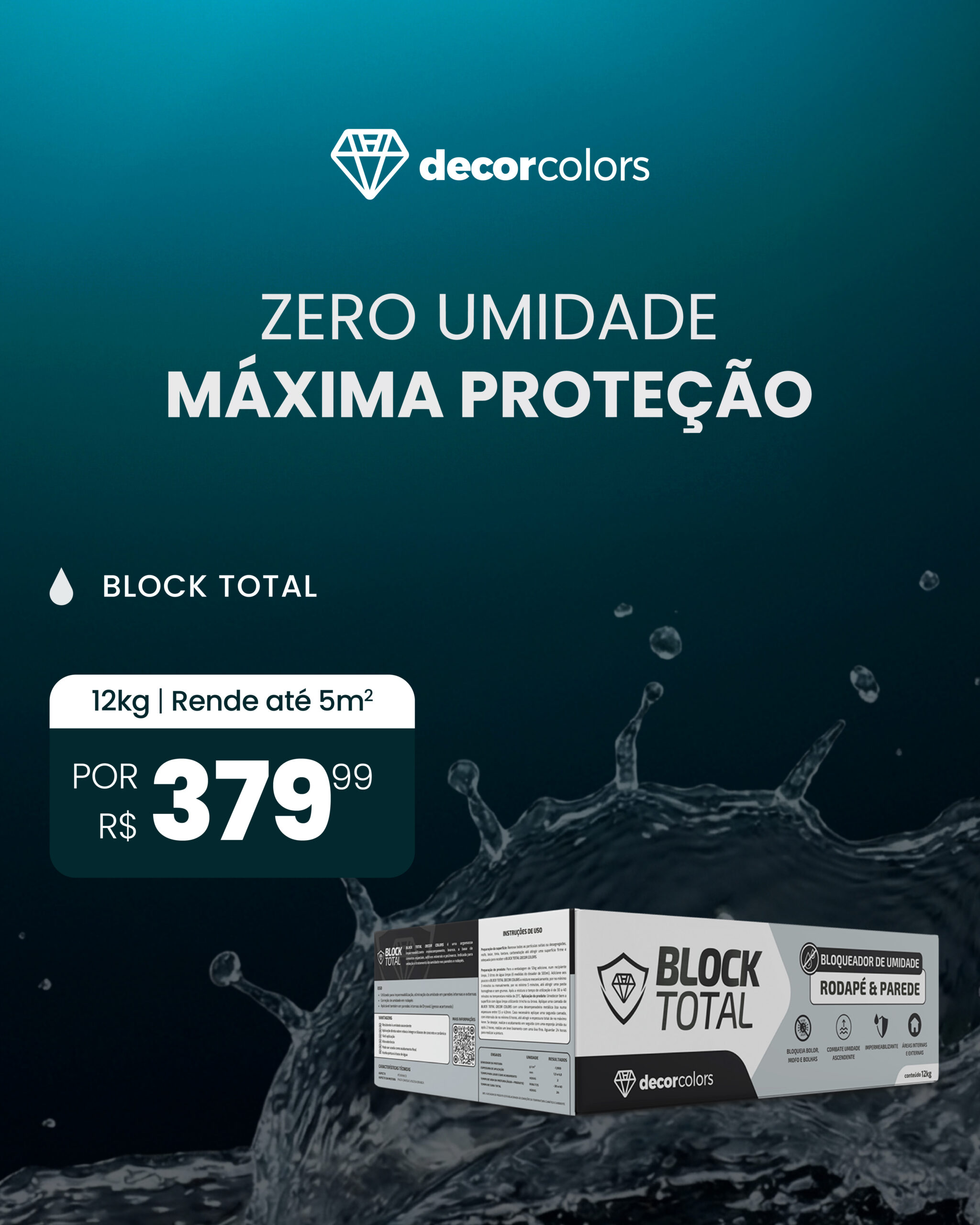 Impermeabilizante definitivo para combater a umidade nas paredes e rodapés. Aplicação direta sobre reboco íntegro e blocos de concreto e cerâmico.