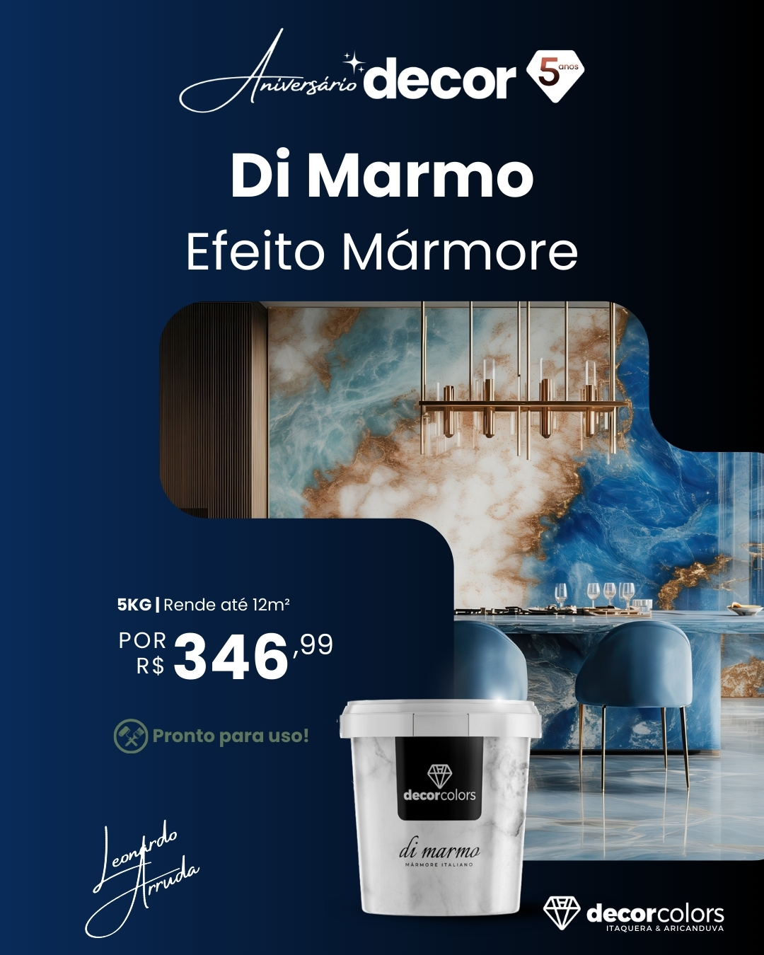 O Di Marmo Efeito Mármore da Decor Colors proporciona sofisticação e elegância para suas paredes, recriando o visual nobre do mármore com um acabamento refinado e exclusivo.